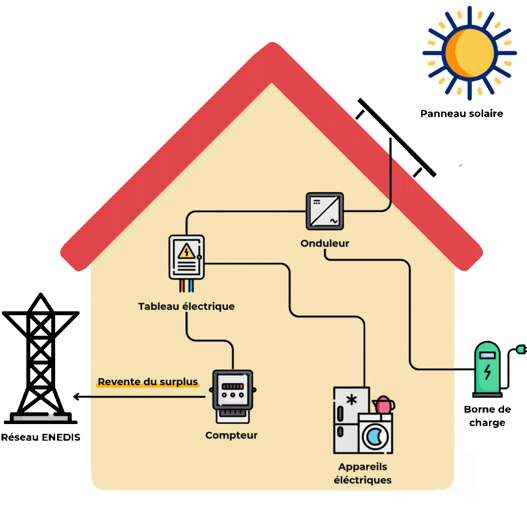 L'énergie produite est en priorité consommée sur site. Le surplus de production est revendu