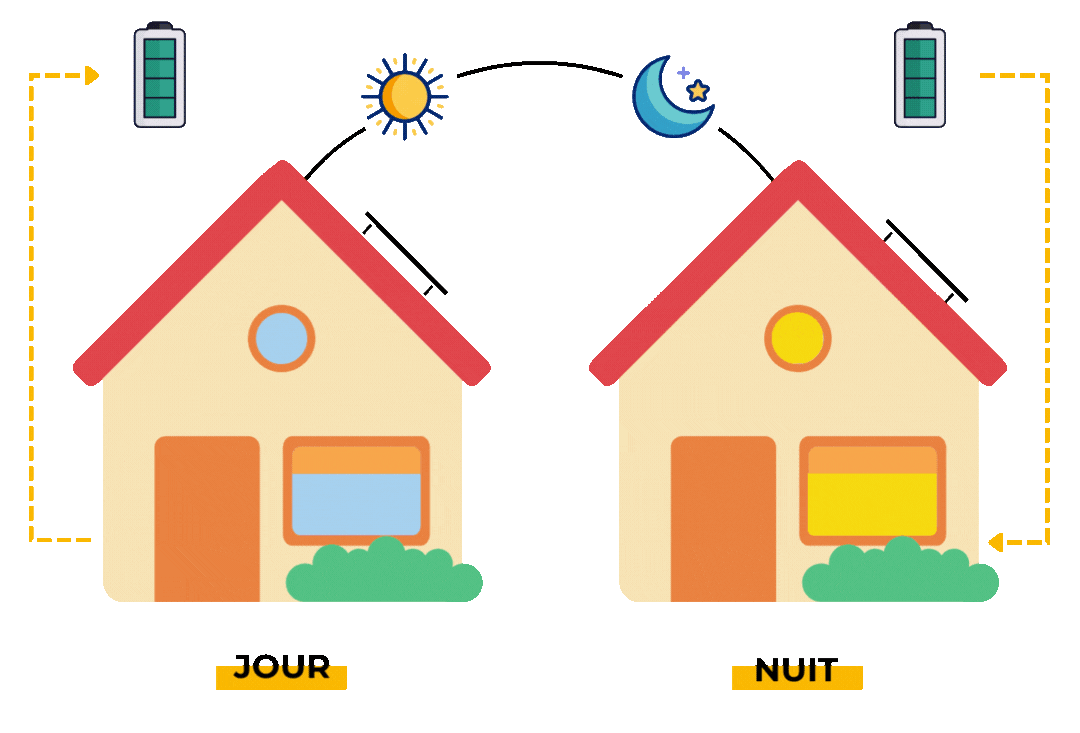 Cette quantité d’énergie (kWh) est ensuite déduite de la facture d’électricité les moments ou la consommation du site est supérieure à la production (exemple la nuit ou les jours de faible ensoleillement)